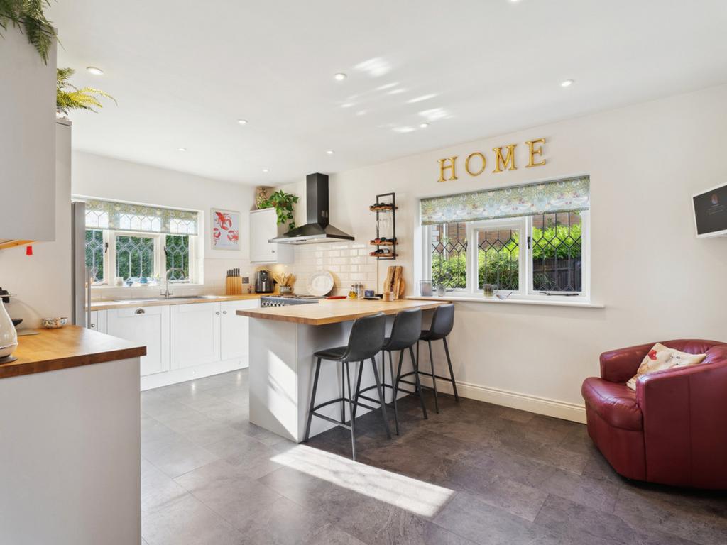 West Cottage beautifully merges character and contemporary living, featuring leaded windows, elegant parquet flooring, and charming wooden doors. This modernised home radiates brightness with an impressive kitchen includes a Rangemaster stove, farmhouse-style cabinetry, and sleek wooden surfaces with open-plan living area perfect for entertaining.