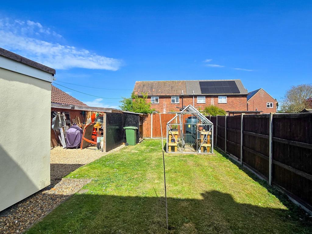 Tucked away in a small close of similar properties, this spacious 3-bedroom semi-detached ex-local authority home sits on a generous corner plot and offers fantastic outdoor space. The large side garden is laid to lawn, with a patio area at the rear, ideal for entertaining. A driveway with ample parking leads to a detached double garage, complete with a useful open-plan lean-to workshop to the side. The rear garden also features a greenhouse and oil tank, all laid to lawn. Inside, the recently refitted kitchen boasts sleek high-gloss units, integrated fridge freezer and dishwasher, a mid-height double oven, and space for a dining table and chairs. The ground floor also benefits from a utility room and separate W.C. The cosy lounge features a woodburner, perfect for relaxing evenings. Upstairs are three well-proportioned bedrooms and a modern refitted shower room. Additional peace of mind comes with a newly installed roof, making this home move-in ready for its next owners.
