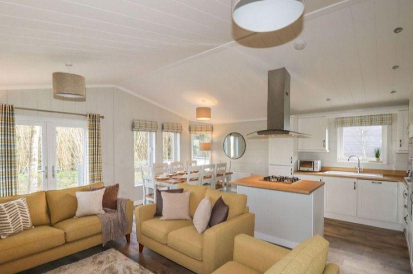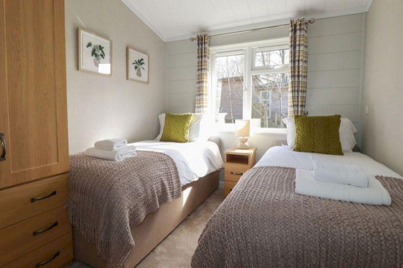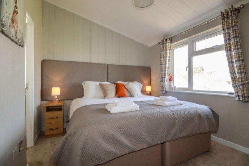 The lodge features two generously sized master suites, each complete with a king-size bed and private en-suite bathroom, offering privacy and comfort for owners and guests alike. A twin bedroom and a bunk room provide additional accommodation, making this an ideal holiday lodge for families with children or for hosting friends. The flexible layout and larger footprint also make it a smart option for shared ownership with extended family.