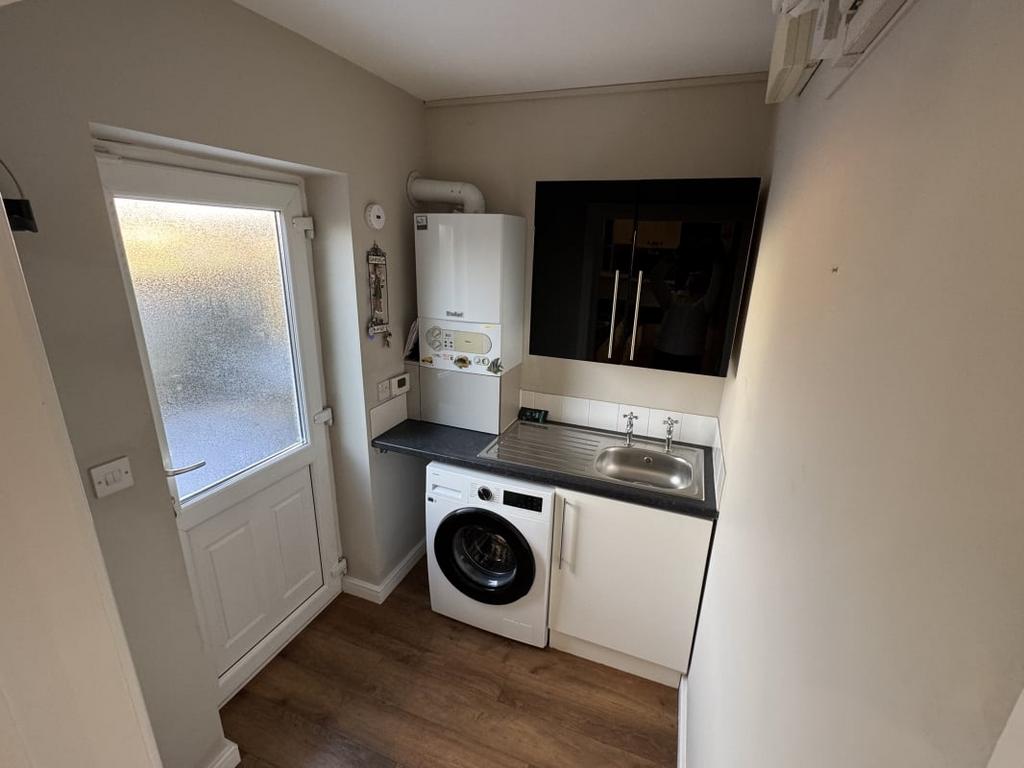 The living room is a bright and airy space, with large windows that flood the room with natural light. The room is perfect for relaxing and entertaining, with plenty of space for a comfortable sofa and TV. The kitchen is a modern and well-equipped space, with a range of high-quality appliances including dishwasher, fridge and freezer all integrated and ample storage. Including utility room with washing machine. There is also a small downstairs toilet.