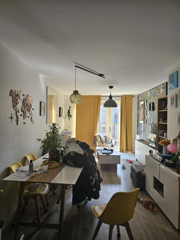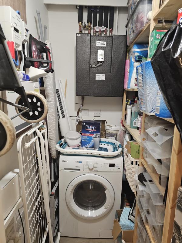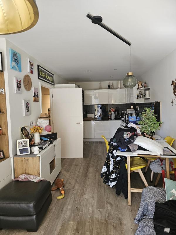 The apartment boasts a spacious open-plan living area, flooded with natural light through the large windows and glass doors, which lead out onto a private balcony perfect for al-fresco dining and taking in the fresh air. The modern kitchen is equipped with a range of high-quality integrated appliances, including a induction hob, oven, dishwasher, and microwave, making cooking a pleasure. great storage room, ideal for laundry and shelfs storage