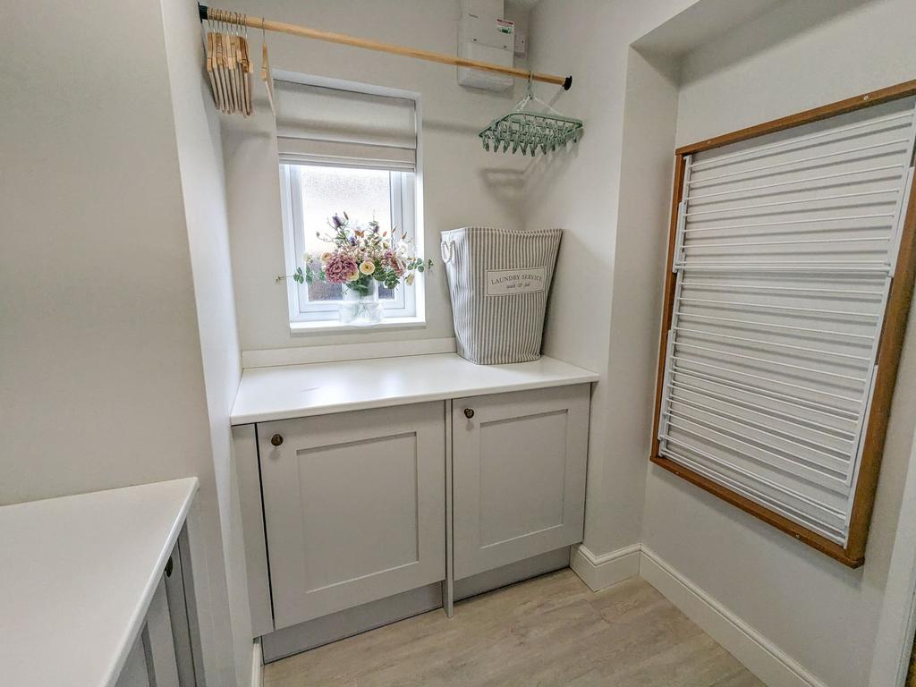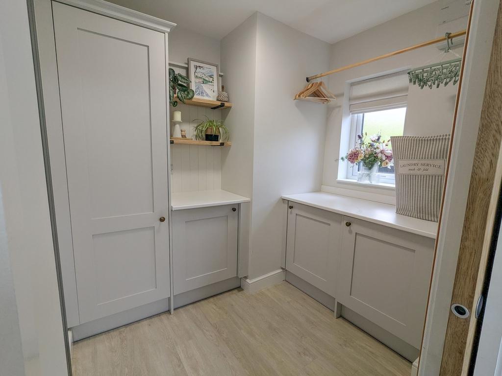 Double glazed window to side, storage cupboards and space for washing machine/tumble dryer.
