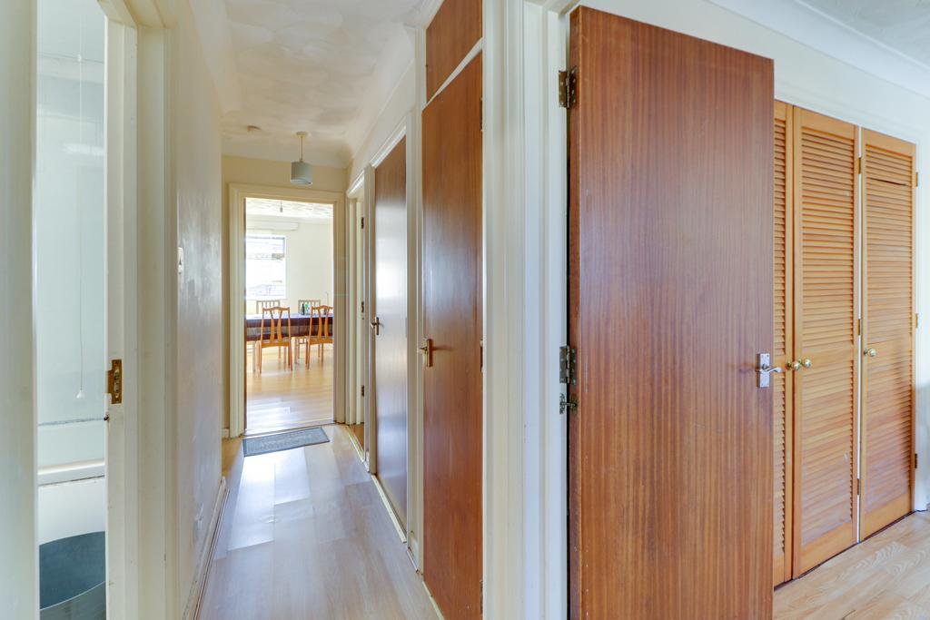 Textured and coved ceiling, storage and airing cupboard, borrowed light window, laminate flooring and doors into;
