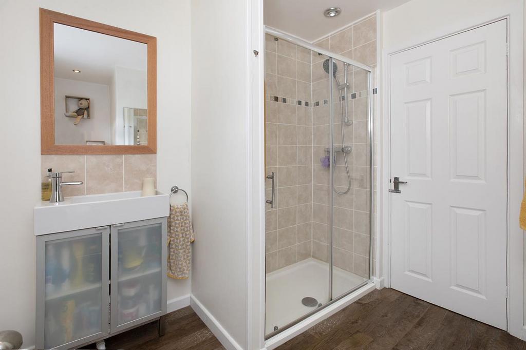 The useful downstairs WC comprises a low level WC, wall mounted wash hand basin and space to hang coats.