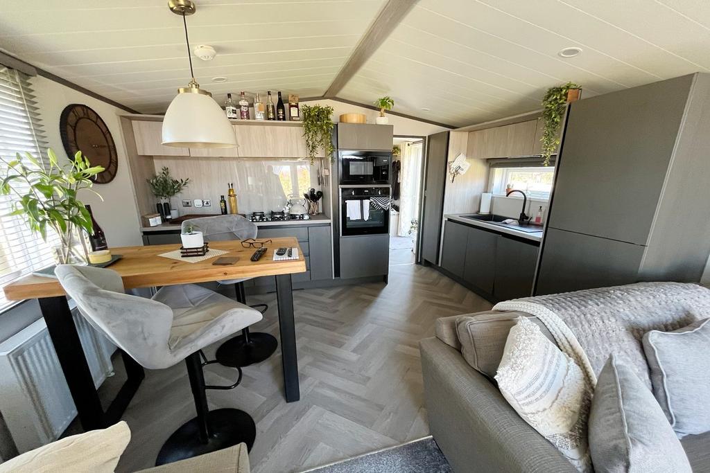 We love this practically new, stunning 'lodge' which occupies a prime position within this small exclusive holiday development. This stylish property is sold furnished and in immaculate order throughout. The accommodation includes an entrance hall, a generous open plan living/dining/kitchen with fitted sofas, breakfast bar and chairs plus kitchen appliances, a stylish main bedroom which has a dressing area and an en-suite shower room, a second bedroom plus a modern fitted shower room. There is space to the front to park two vehicles. With the fells and lakes nearby and the beautiful Cumbrian coast on the doorstep this will make a wonderful, and luxurious holiday home!