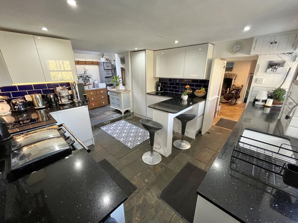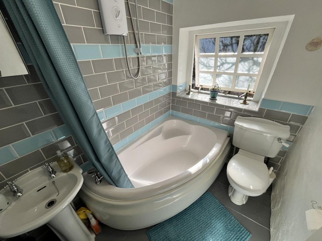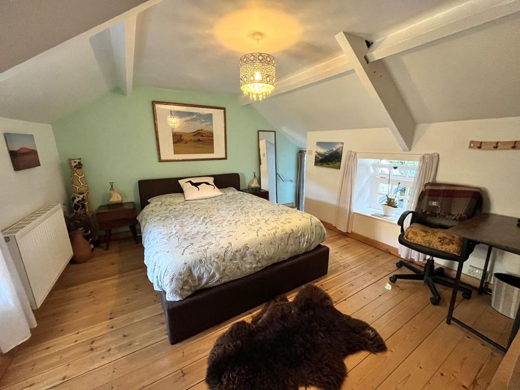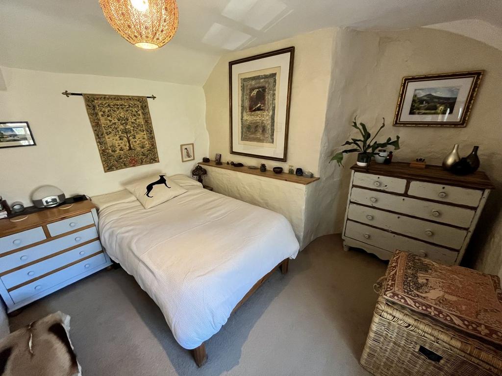 The cottage comprises of a welcoming dining room and cosy lounge, both with fireplaces housing wood burning stoves. The modern kitchen has a range of fitted wall and floor cupboards, quartz worktops, slate floor, breakfast bar, oil Rayburn and integrated dishwasher. Rear access brings you into a lobby; flooded with natural light, that is open to the kitchen and leads to the office, which is currently used as an exercise room. Upstairs, there are three bedrooms and two bathrooms. The master bedroom or guest room is accessed via a circular stone staircase from the lounge and has a contemporary ensuite shower room.