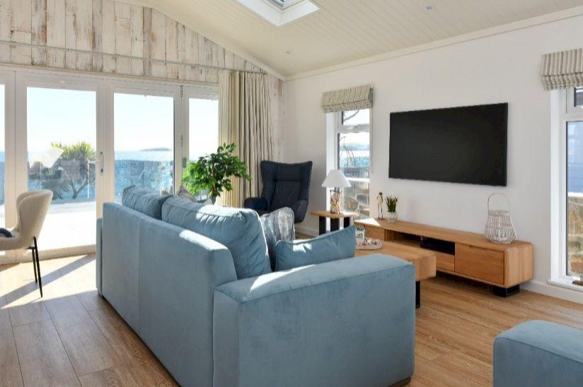 The bright and inviting open-plan living area is bathed in natural light, thanks to large windows. Whether you're hosting family gatherings or enjoying a quiet evening, the seamless transition to the outdoor decking allows you to fully embrace the coastal lifestyle.