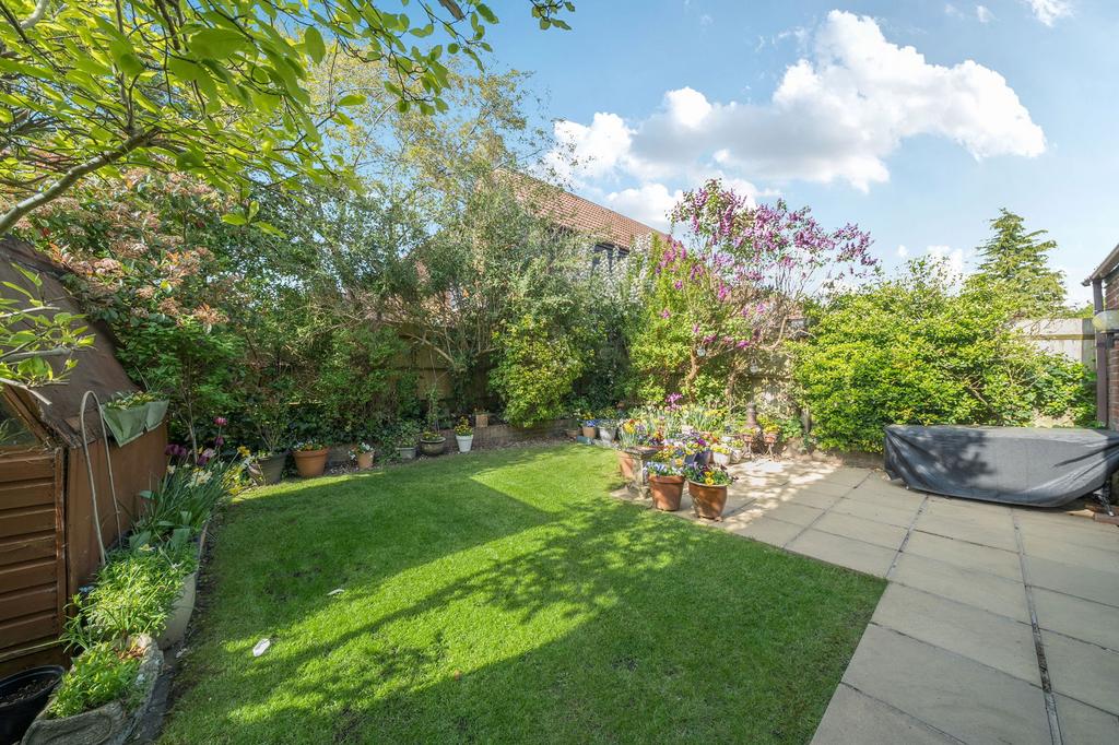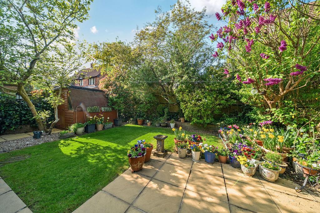 Outside, the rear garden is surprisingly private for a modern home: a broad paved terrace, a level lawn sits at the centre and richly stocked shrub and flower borders add colour year-round; a shed is tucked discreetly to one side. At the front there is lawn and planting beside the drive, and the integral garage benefits from power and light, offering excellent storage or conversion potential subject to permission.