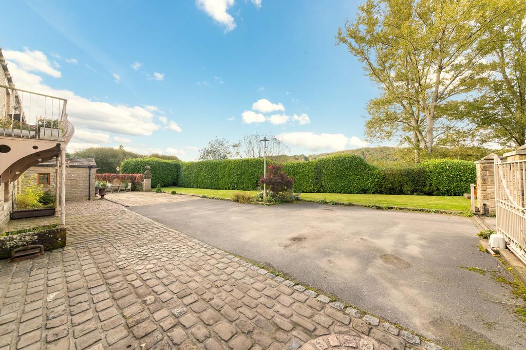 The home occupies a truly remarkable location along with only two neighbouring properties of a similar quality and build, this beautiful, very large, detached, stone-built home is set overlooking its delightful formal gardens approached through high stone gate post with automatically operated broad iron gateway. It is immediately apparent that the gardens are both mature and well laid out, having a very long lawn, large tarmacadam driveway, beautiful, cobbled area providing extra parking/display space and a fabulous stone flagged patio once again adjoining the driveway and provides additional parking if so required. There are many hidden gems within the garden, featuring beautiful stonework throughout. Approached over a long rural lane, the property is a short drive away from Meltham’s varied facilities and has easy access to the main road and therefore the motorway networks. It is fair to say that Bent Ley Road in its initial part (once leaving the main road) is somewhat commercial and is a world away from this peaceful rural setting with superb woodland and countryside walks close at hand. With views across the valley, the home enjoys a good degree of privacy.