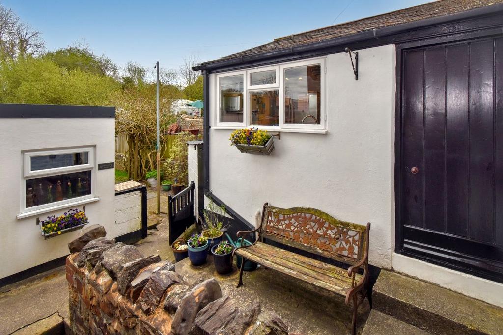 Steps lead to a converted home office/gym. The garden is laid mainly to lawn with a gated enclosed patio area. Underneath the property there is a cellar offering additional storage space.