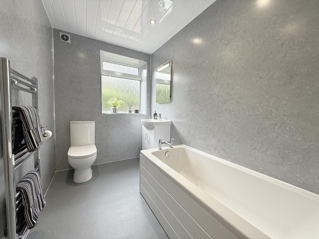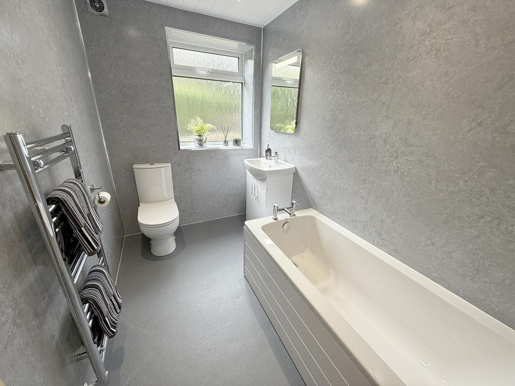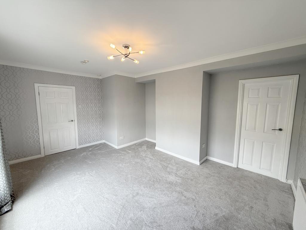 An expansive bright front facing living room laid in luxury pebble grey carpets; Beautifully finished, fully fitted, galley kitchen (hosting floor and wall mounted units with complimentary work surface over and integrated appliances); Compact 3 Piece Bathroom off hallway with vanity style wash hand basin low flush wc and upvc panelled bath along with two good sized double bedrooms on the upper level front and rear facing, providing excellent storage provisions.
