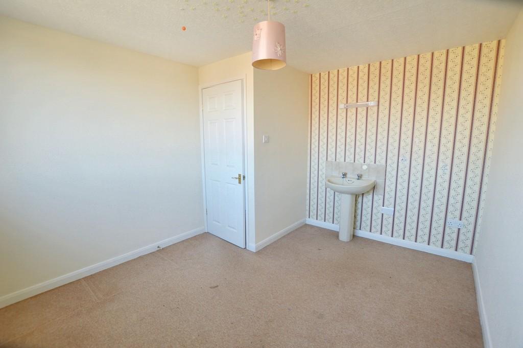 The main double bedroom is L-shaped and has a window on the rear elevation with tilt and turn opening centre section. There is a light-coloured pedestal wash hand basin with splash-back and a shaver light over.