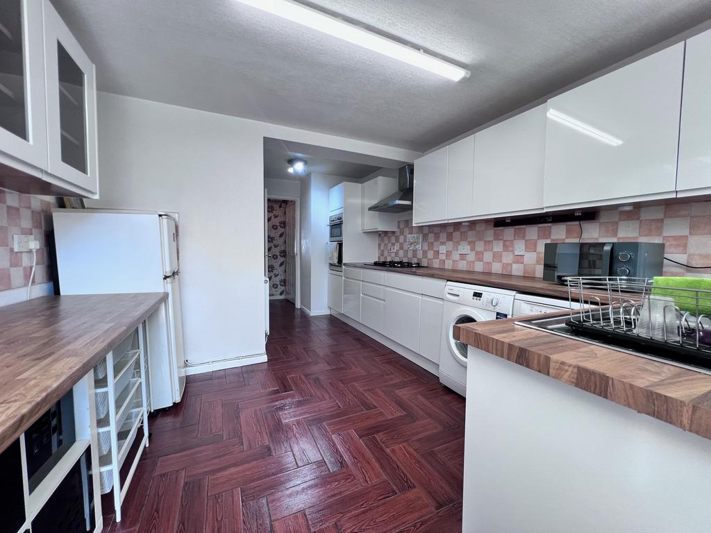 Fitted wall and base units, built-in oven, hob and extractor, uPVC double glazed window and door to the conservatory.