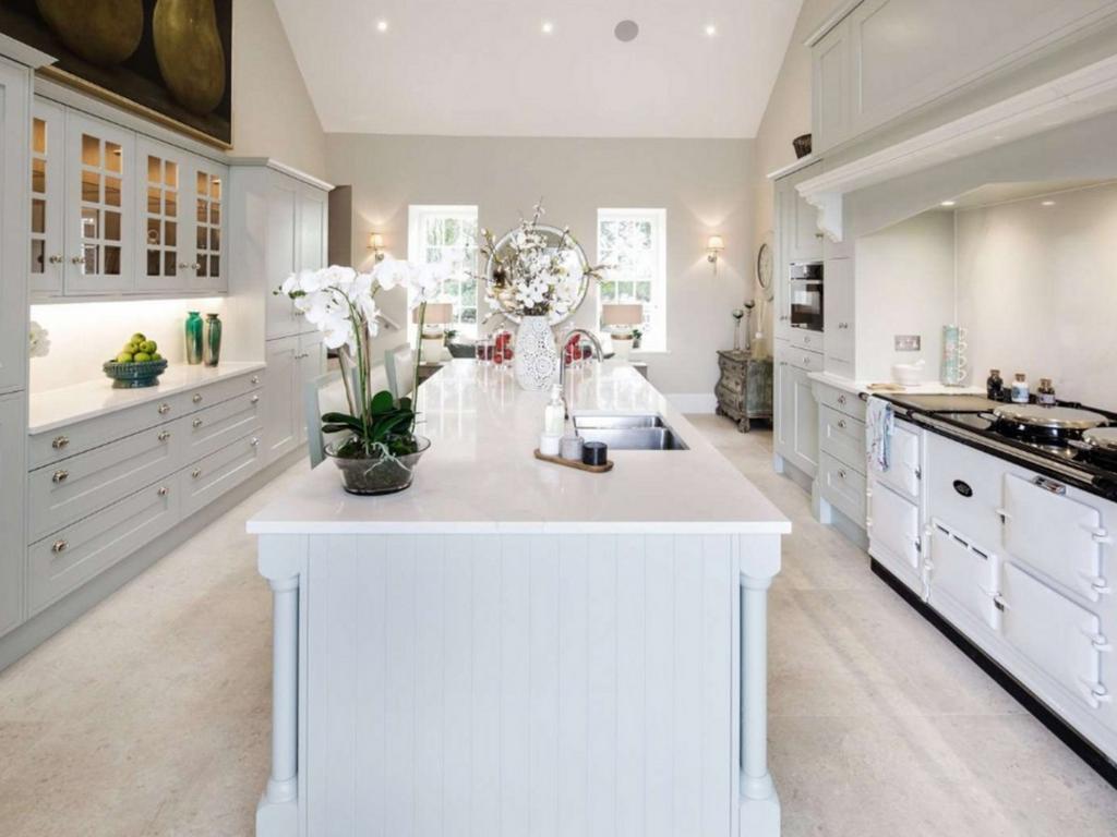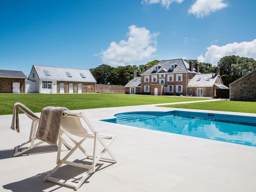 The former garage has been converted into a luxurious two-bedroom en-suite guest cottage, in the same neutral and luxurious colour palette. Substantial in size the guest house has an open plan kitchen and sitting room with a romantic Juliet balcony that overlooks the grounds and swimming pool. Next to the pool there is also a self-contained pool house which contains a full kitchen, changing and shower facilities with inbuilt Sonos to the exterior walls making for fun pool parties. The pool itself has been completely refurbished with new contemporary lighting.