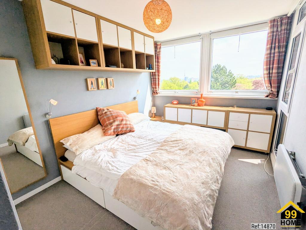 Generously sized, with built in double wardrobe storage and offering plenty of space for additional furniture including a Super-King sized bed in the current configuration. Large windows provide natural light and sweeping views of the surrounding area, creating a bright and airy atmosphere. Double glazed front facing window, electric Mica flat panel radiator, fitted wardrobes, opening window onto balcony.