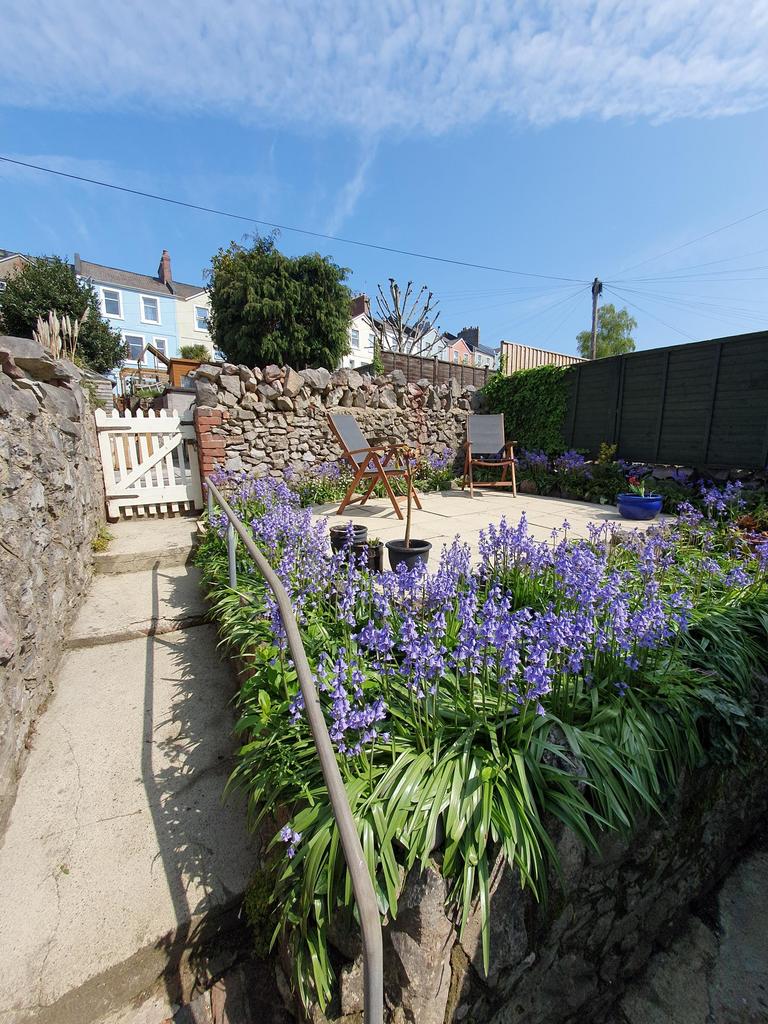 Mainly paved with boarders and stone walls and with a gate to rear access road.