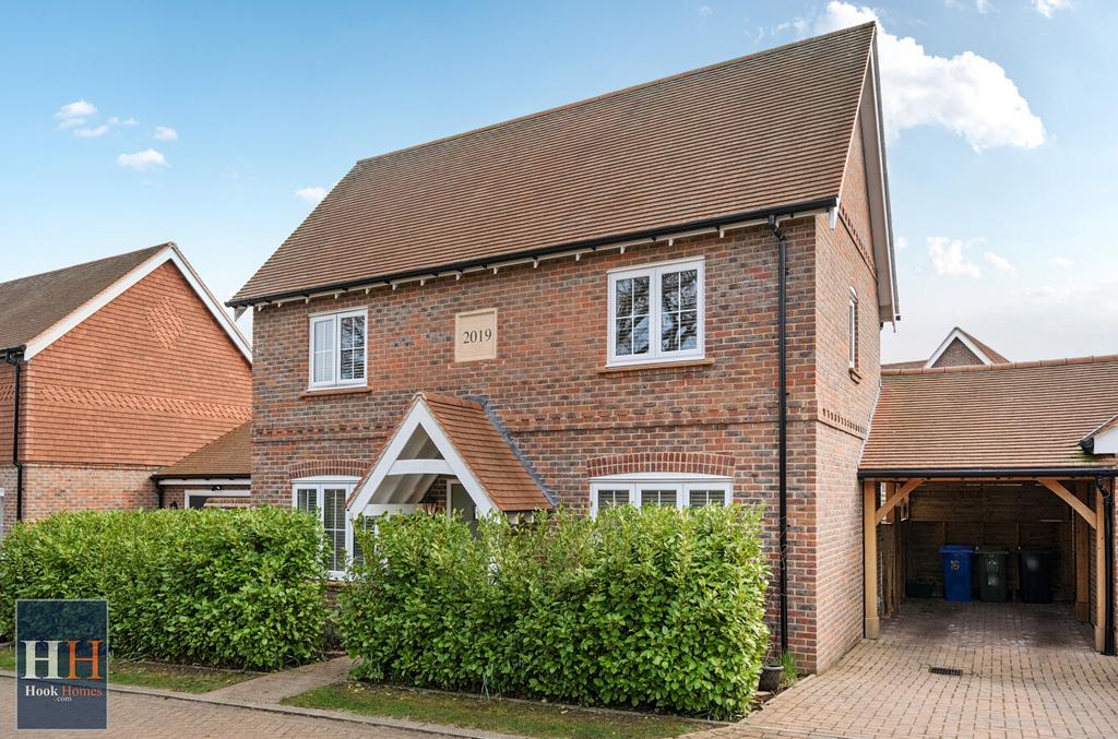 Hook Homes – A very rare, modern detached house, built in 2019 by Croudace Homes, with the benefit of two double bedrooms, both with en-suite and fitted wardrobe. Enclosed south-Facing rear garden, driveway and car port.