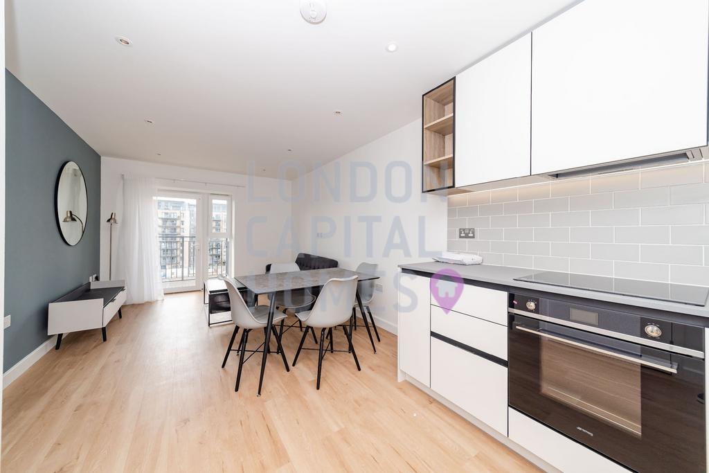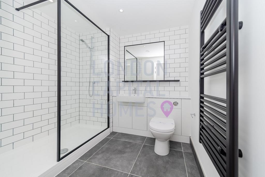This stunning 1-bedroom apartment is located on the 4th floor of the highly desirable Beaufort Park development, NW9. The apartment features a custom-designed fitted kitchen with a laminate worktop, feature tile splashback, integrated Bosch fridge/freezer, integrated SMEG dishwasher, integrated SMEG oven, touch-control induction hob, stainless steel bowl sink with black mixer tap, under-cabinet LED lighting, and a SMEG washer/dryer in the hall cupboard. The interior-designed bathroom is fitted with tiled floors, a feature tiled wall, a Villeroy & Boch basin and toilet, Vado chrome-finished taps, a heated black towel rail, a toilet roll holder, and a low-level vanity cabinet.