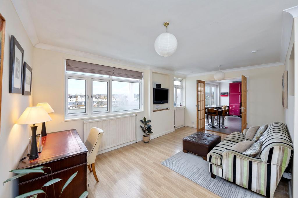 The principal bedroom is a fantastic size and benefits from a walk-in dressing room, en-suite shower room, and access to the second balcony. The second bedroom is also a spacious double, served by a stylish modern family bathroom. A wide hallway connects the spaces seamlessly and includes excellent built-in storage.