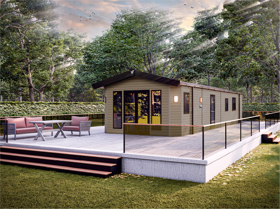 The Willerby Sheraton boasts a wealth of features designed for effortless living. Enjoy breathtaking countryside views from your private composite decking, perfect for al fresco dining or simply relaxing and soaking up the sun. The exterior is finished with stylish CanExel® cladding in a rich brown, complementing the natural surroundings.