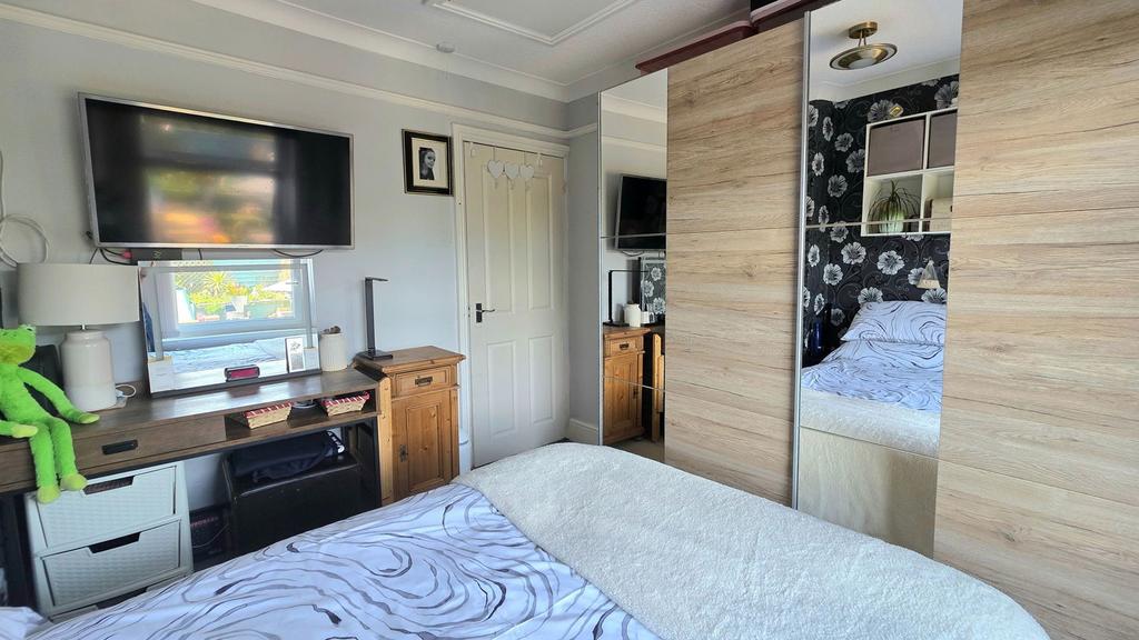 Upstairs, the property showcases two spacious double bedrooms, both with breath taking mountain views and glimpses of the beautiful rear garden. The bathroom has been renovated and used to be the third bedroom, so it can easily be converted back if needed. The loft is easily accessible with a pull-down ladder and is equipped with electricity, providing additional storage space or potential for further development.