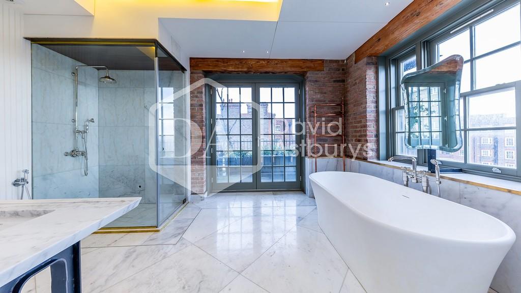 This exceptional penthouse is a true celebration of space and character, featuring stunning design elements such as original exposed brickwork, soaring vaulted ceilings, dramatic steel beams, and beautiful parquet flooring throughout. The vast double reception area is perfect for grand-scale entertaining, complemented by an expansive bespoke kitchen finished to the highest specification, along with sumptuous, spa-like bathrooms that bring a sense of indulgent living to the everyday.