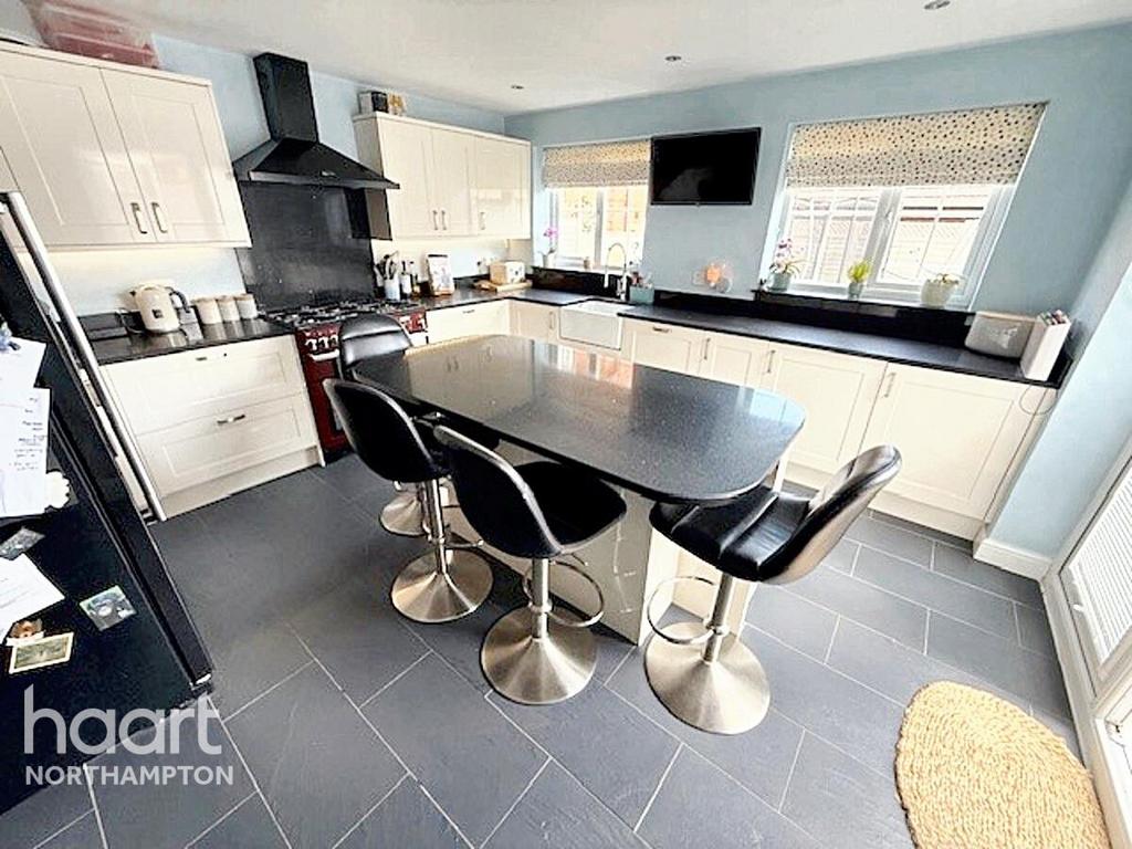 The ground floor features three well-proportioned reception rooms, including a comfortable lounge that flows seamlessly into a bright and airy dining area—ideal for both relaxing and entertaining. A standout feature is the converted garage, now serving as a stylish office or playroom with a striking vaulted ceiling, offering fantastic versatility for remote working or family use.