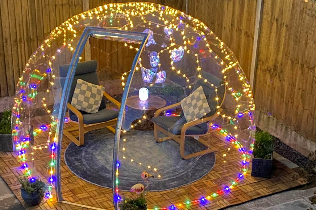 The rear garden is comprised of an extensive patio area with raised flower borders and an attractive potting shed. A exciting bonus is the addition of a geodesic dome covered seating area which comes with the property: a fun space in which to sit out and enjoy a book or a glass of wine.