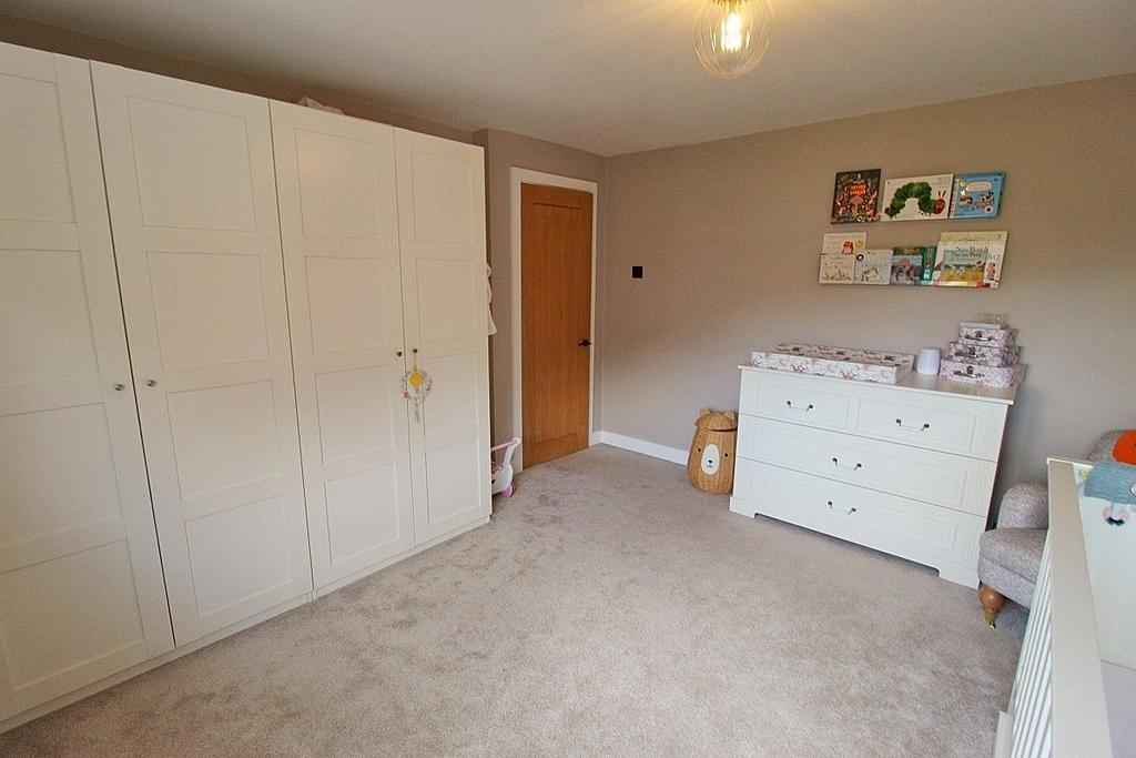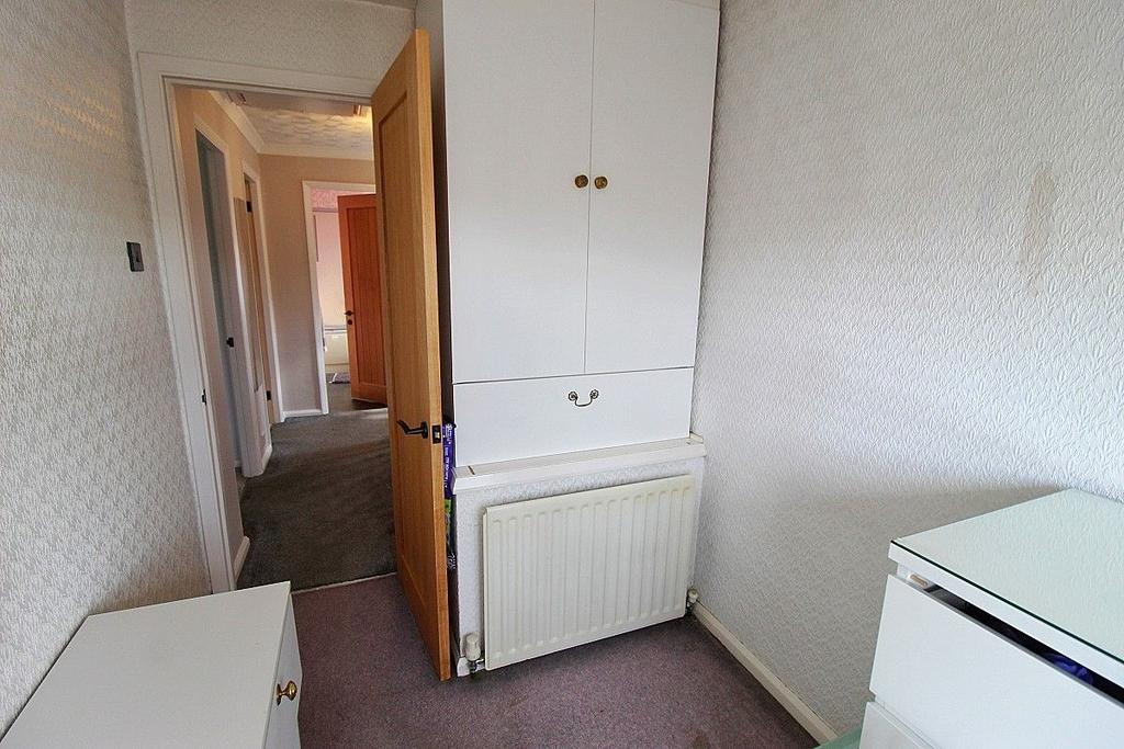 Includes a fitted storage cupboard, carpeted flooring, a radiator, and a front-facing window allowing natural light.