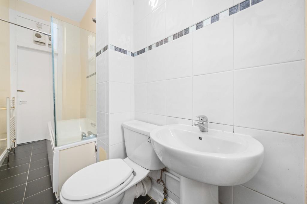 At the back of the property is the second bedroom, with a view on to the back court, and the three piece bathroom complete with WC, basin and shower-over-bath.