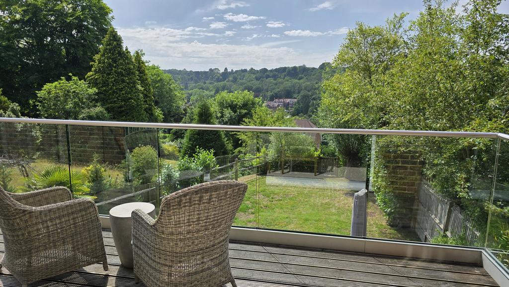 Outside: The property is accessed via a block-paved driveway, offering ample parking for three to four cars. The garage, fitted with an electric door, can be conveniently accessed from the hallway. There are several balconies, all enjoying lovely views — including one extending from the sitting room, Juliet balconies in the principal bedroom, and a full-width balcony from the guest suite on the top floor. The rear garden is predominantly laid to lawn and thoughtfully landscaped to create several distinct areas. Adjacent to the house, a delightful patio provides the perfect space for alfresco dining and entertaining. This patio opens onto a lush lawn, with steps leading down to an additional level lawn area. The property enjoys stunning, far-reaching westerly views.