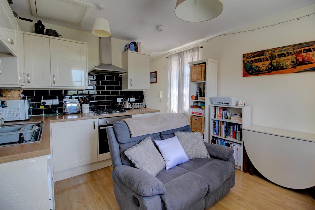 The open plan living room offers lots of natural light and the modern fitted kitchen includes fridge, oven & hob. The property also offers one parking space and bike storage/shed.