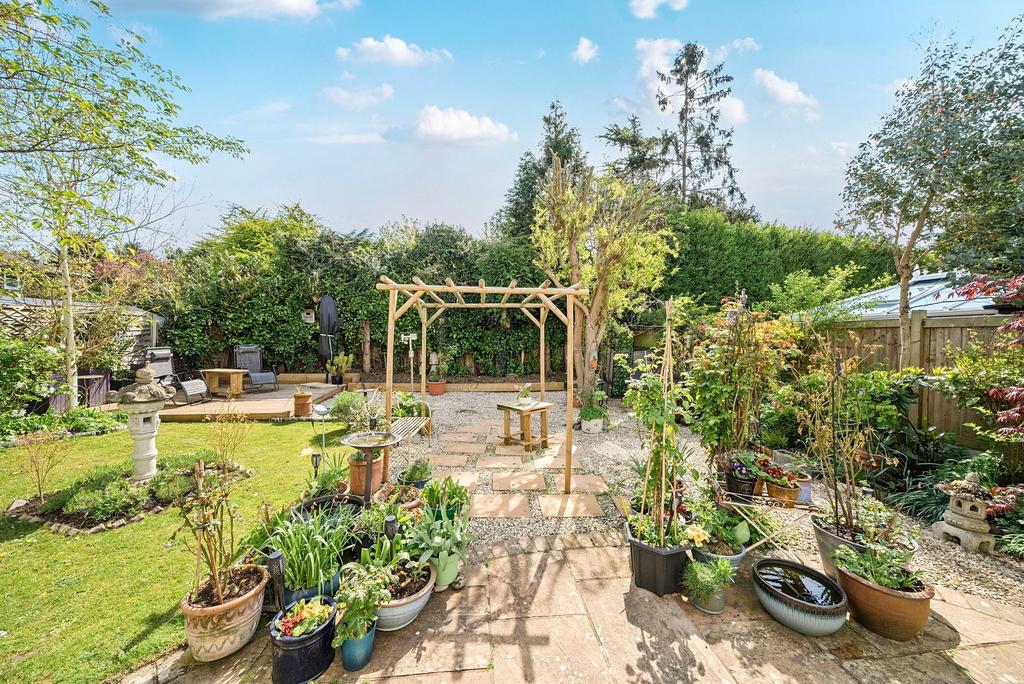 The stunning rear garden has been professionally landscaped and offers several separate seating areas, perfect for relaxing, entertaining, or simply enjoying the outdoors. With a decked terrace, paved patio, and a stylish pergola, it’s an outdoor space designed to be enjoyed year-round.
