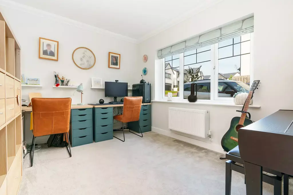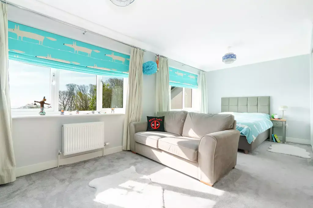 Upstairs, there are four generous double bedrooms, including a superb principal suite with dressing room and en-suite, while bedroom two also enjoys its own dressing area and en-suite. Bedroom three is a particularly versatile space, currently set up with an adjoining living area (previously a fifth bedroom).