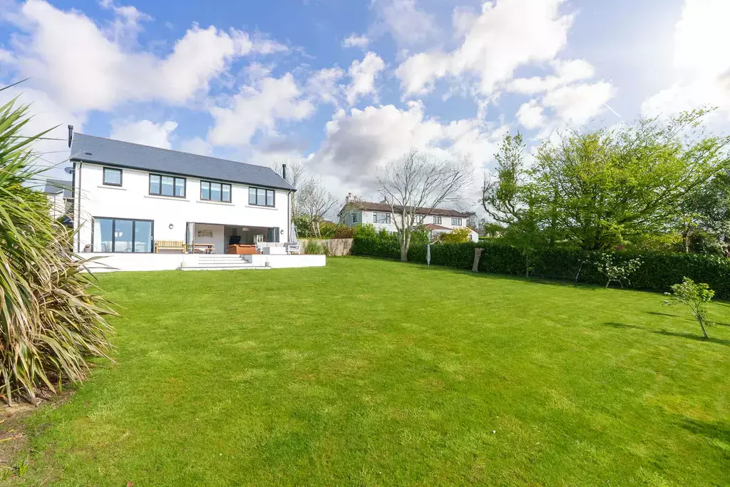 Positioned in arguably the finest plot of an exclusive development of just 12 luxury detached homes, this superb family residence was built to a high specification circa 2018 and enjoys a deceptively large garden with captivating sea views over the southern coastline and out to sea.