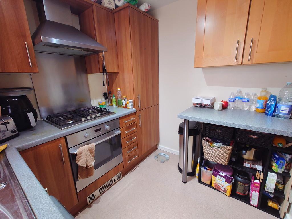 KITCHEN 7' 11" x 7' 3" (2.41m x 2.21m) Comprising a fitted kitchen with base and wall mounted cupboard units, with worksurfaces over. Single drainer sink unit, with window to the front. Integrated tall fridge/freezer and space for a washing machine/dryer combo. Electric oven/grill with gas hob over. Cupboard concealing the Potterton Pro Max HE plus gas combi boiler. Cushion flooring. Extractor fan.