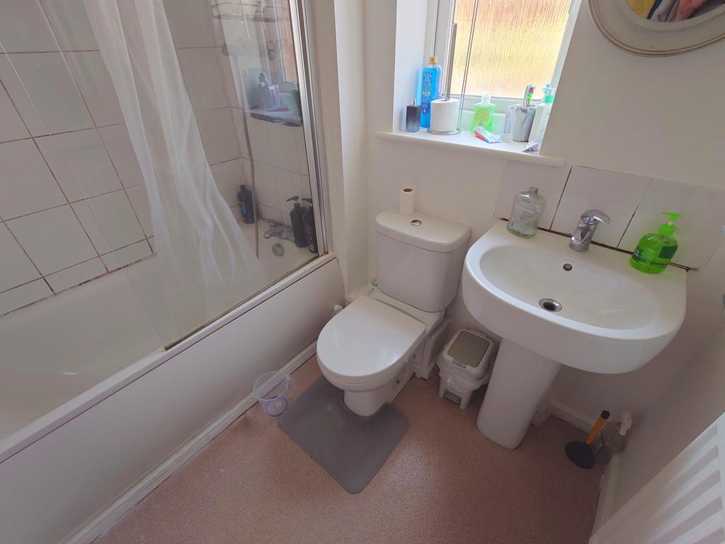 BATHROOM 6' 10" x 5' 6" (2.08m x 1.68m) A white suite with mains pressured shower over, low level W.C and wash hand basin. Part tiled walls. Frosted window to the front. Radiator. Cushion flooring.