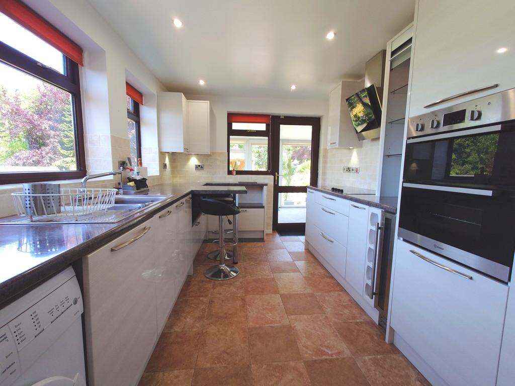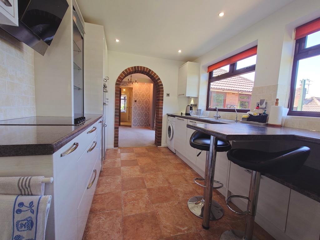 KITCHEN 13' 4" x 8' 8" (4.06m x 2.64m) A beautifully updated fitted kitchen, with two windows to the side overlooking the lovely rear garden. A good range of base and wall mounted cupboard units, with worksurfaces above, and breakfast bar area. Integrated eye level oven/grill. Electric hob with extractor hood over. Integrated tall fridge/freezer, integrated dish washer, and space/plumbing for a washing machine. Single drainer sink unit. Splashback tiling. Tiled flooring. Spotlights to the ceiling. UPVC door and window leads to: