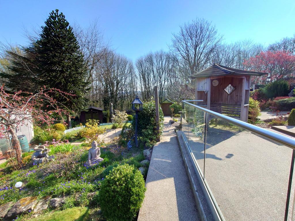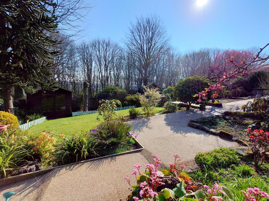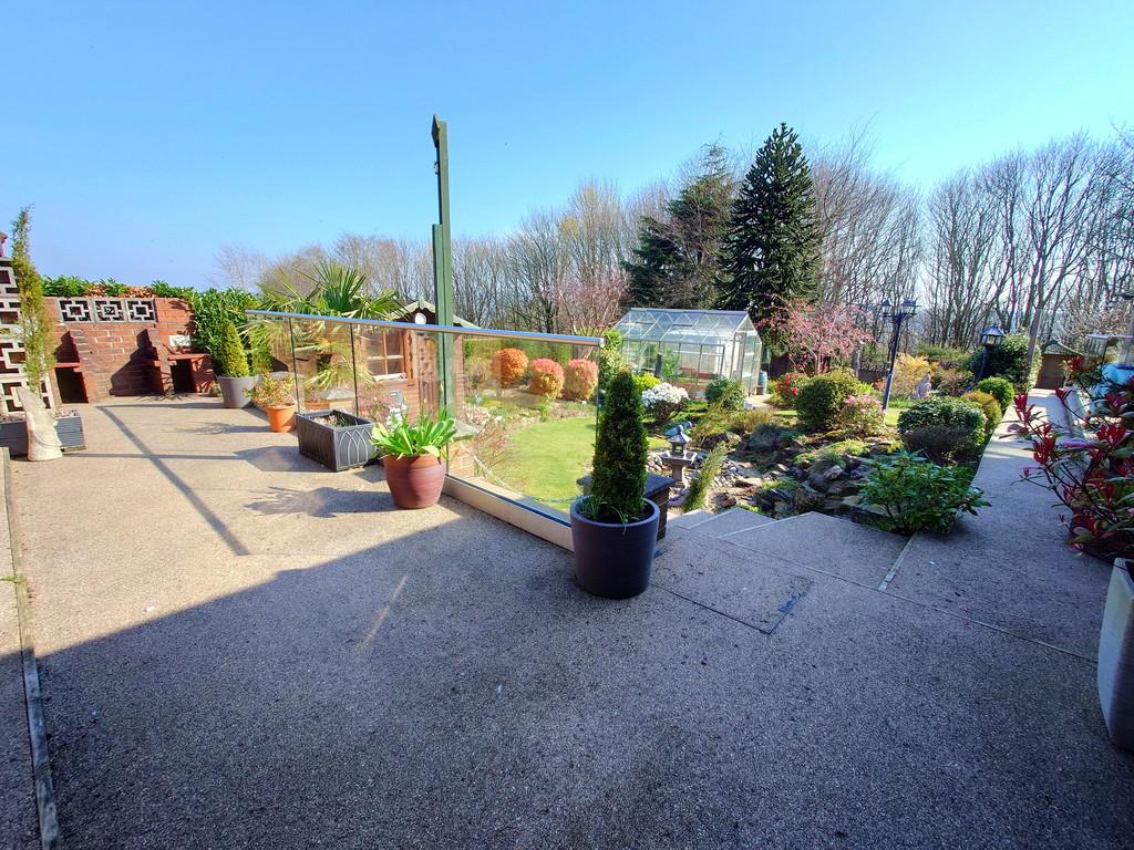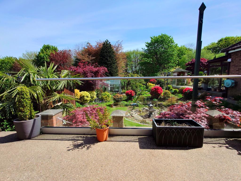 REAR GARDEN A truly stunning rear garden, with so many areas to get lost in! From having laid to lawn sections, to a resin area sweeping round the bungalow with glass balustrades, the garden leads to rockery sections and seating areas, all being surrounded by gorgeous trees and mature shrubs. Two timber storage sheds, and greenhouse. Views across to Jodrell Bank and beyond. A great sized and private feel, the garden is a pure delight to behold!