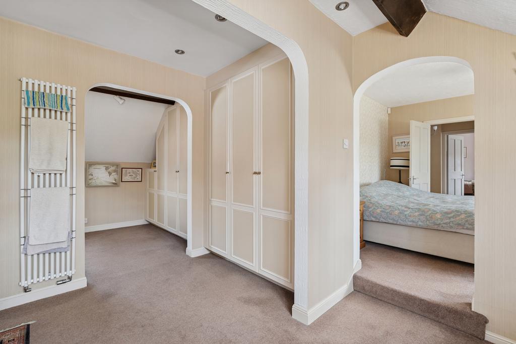 SECOND FLOOR STUDY/ATTIC ROOM About 28’8” x 16’9” Two radiator, three roofline windows, eaves storage, further built-in storage cupboards, ceiling downlighters. Scope to convert to 2 further bedrooms subject to any necessary permissions. Fully boarded attic space above.