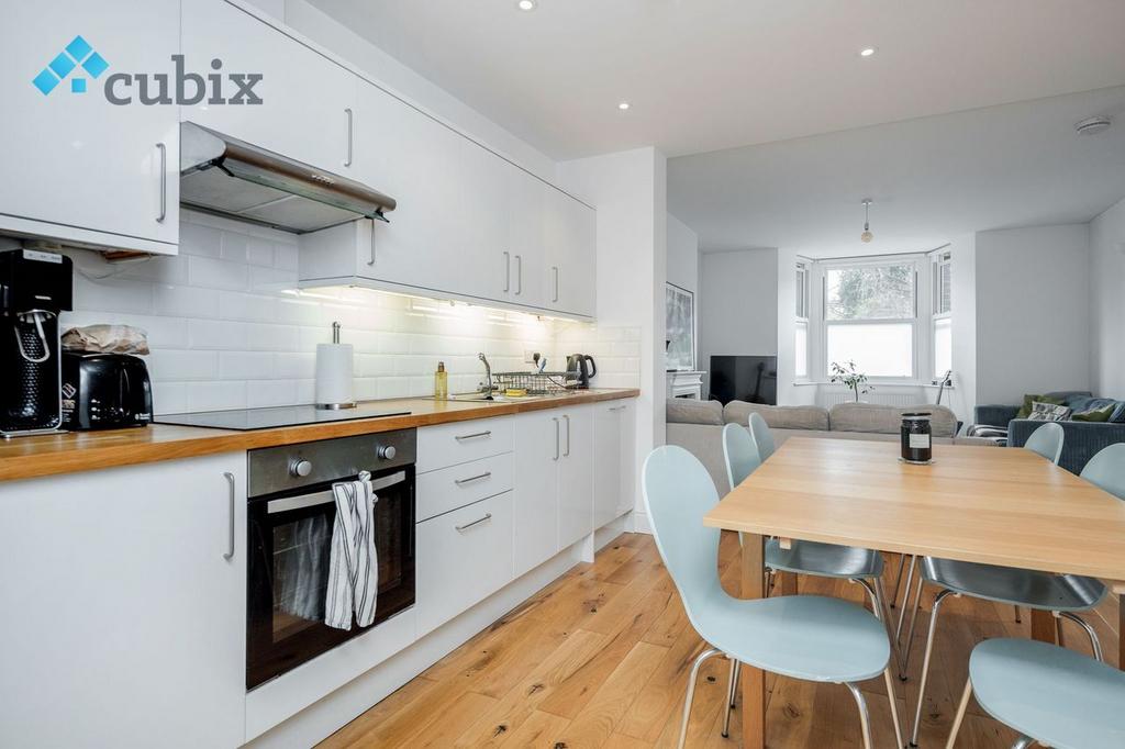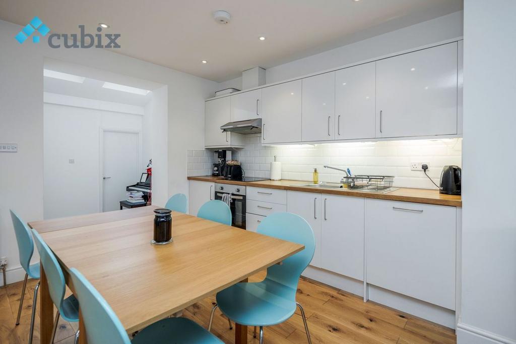 The interior is in excellent condition with a newly fitted kitchen and an open plan living room, and a kitchen with a dine-in area.