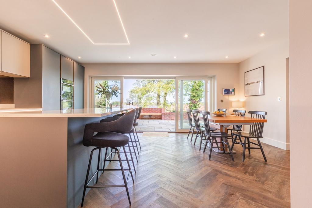 Standing proudly in an exclusive and highly sought-after collection of homes, The Warreners presents a rare opportunity to secure one of the finest plots within a currently sold-out development. Built just last year to the highest standards by the esteemed Hidden Talents Homes, this enchanting three-bedroom detached residence—complete with a tranquil, west-facing garden bordered by a mature tree line—boasts 1,850 sq. ft. of living space where bold design meets exceptional versatility and functionality.