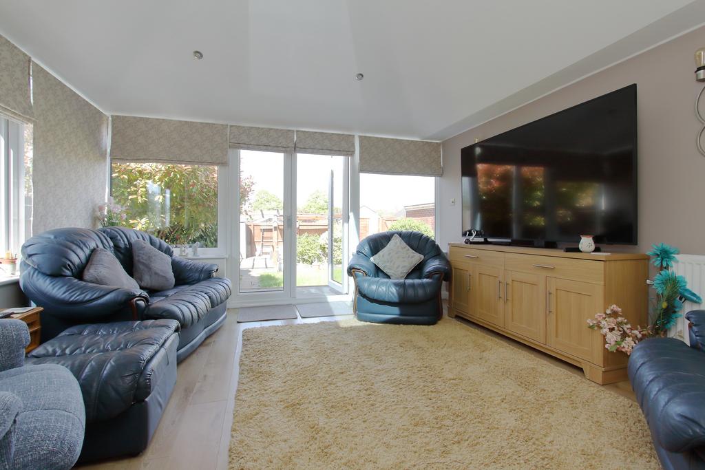 This double-aspect conservatory is a standout feature of the home, offering abundant natural light thanks to its UPVC windows and vaulted ceiling with a skylight. French doors open out to the rear garden, allowing you to enjoy the outdoor space with ease. Two radiators, downlighting, and wood-effect laminate flooring complete this fantastic living area.
