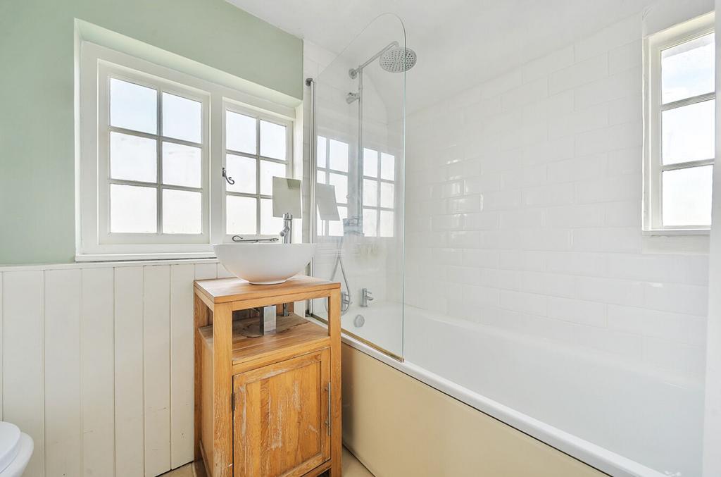 A charming two-bedroom end of terrace cottage, believed to date from circa 1800, located in the highly desirable Bosham area on the A259, just 3 ½ miles west of Chichester. This property boasts a wealth of character features and has the additional benefit of a detached home office/studio and single garage. The living room showcases exposed ceiling beams and studwork, along with an inglenook fireplace that includes stone flags and a wood-burning stove. The kitchen/dining room features shaker style units, solid wood work surfaces and comes equipped with a built-in washing machine, dishwasher, fridge and a Belfast sink. A door opens to a small courtyard area at the rear which extends along the side of the cottage. Upstairs, there are two bedrooms and a bathroom. The main bedroom offers built-in cupboards with ample hanging and shelving space, as well as a window seat with built-in storage below.