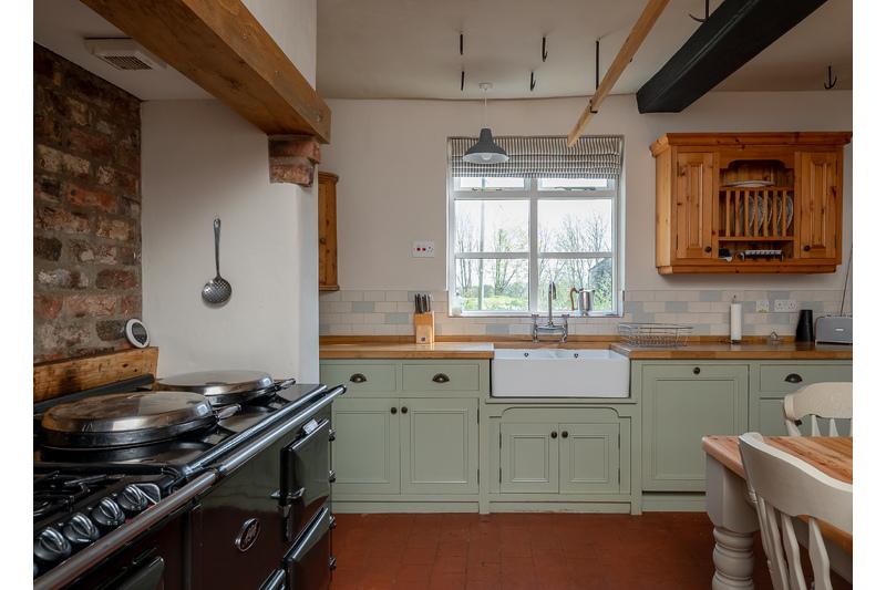 Externally the farmhouse sits within a predominantly south facing well maintained garden, laid mainly to lawn with a range of mature trees and established borders along with private orchard. Adjoining the farmhouse is a brick-built arched cart shed and external store.