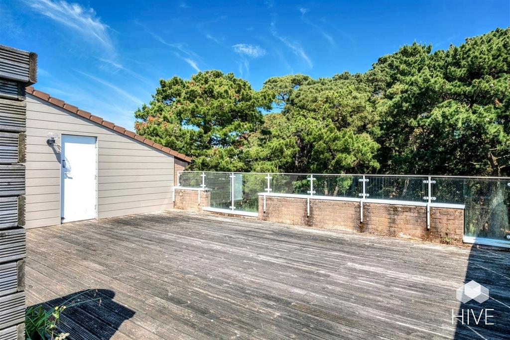 One of the property’s most outstanding features is its private and secluded roof terrace, a true suntrap framed by mature pine trees—perfect for entertaining, dining, or simply unwinding. To the front there is a further terrace on the main living level, providing additional outdoor space accompanied by some of the best views Sandbanks has to offer!