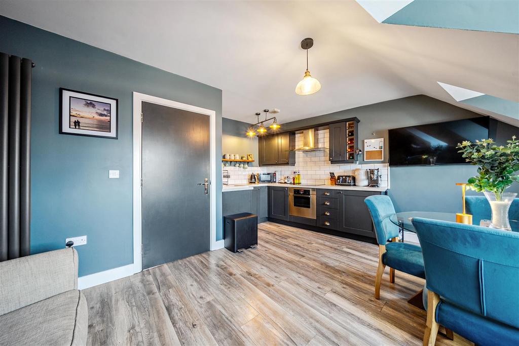 Upon entering the property, you'll notice the high-quality refurbishment throughout the property, highlighted by its stylish and thoughtful details. The living area features a welcoming open-plan design that seamlessly connects the modern kitchen, dining space, and living area. Whether you're entertaining guests or enjoying a quiet evening with family, the spacious layout ensures comfort and functionality. The kitchen is a standout feature, showcasing a deep grey finish and integrated appliances, including an electric hob, oven, overhead extractor, washer/dryer and fridge – a beautifully designed area that combines practicality with sophistication. There is a recently updated bathroom suite consisting of bath with rainfall shower, handwash basin with vanity unit and WC.