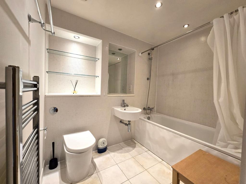 The apartment features a well-sized double bedroom with ample storage and a stylish, modern bathroom with high-quality fixtures and fittings. Residents also benefit from a 24-hour concierge service, ensuring both convenience and peace of mind. For added enjoyment, the development offers access to a communal rooftop terrace with breathtaking panoramic views across London.