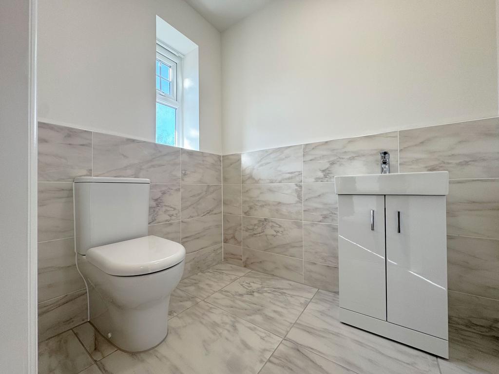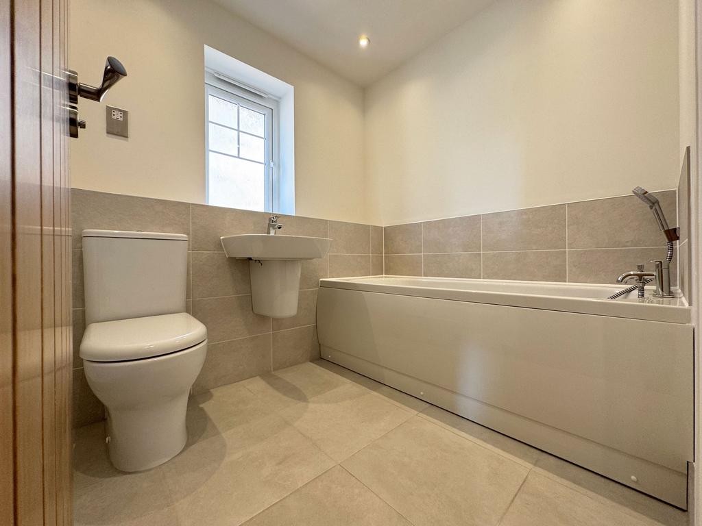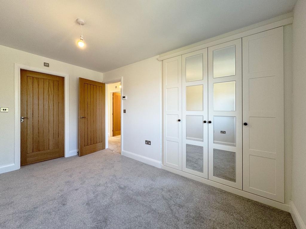 A turned staircase leads to the first floor bedrooms, where the master is en-suite and has Hammonds fitted wardrobes. Externally, there is ample driveway parking for two cars and a single detached garage.