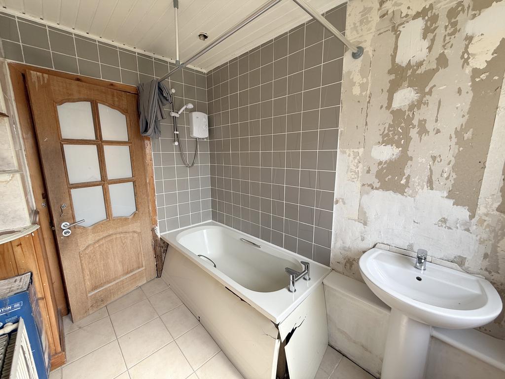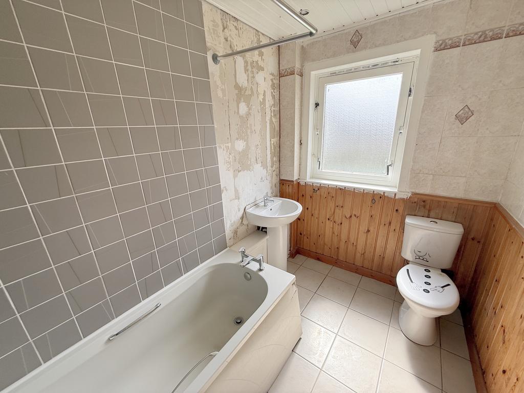 Three piece bathroom, with low flush WC, vanity style wash hand basin and upvc panelled bath.